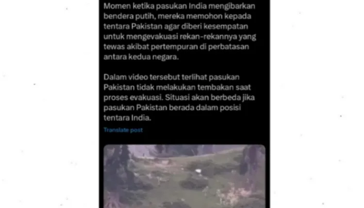 Mimbartimur.com – Sebuah unggahan di media sosial X menampilkan video disertai narasi mengenai yang mengibarkan bendera putih dan meminta kepada tentara Pakistan untuk melakukan gencatan senjata sementara.
