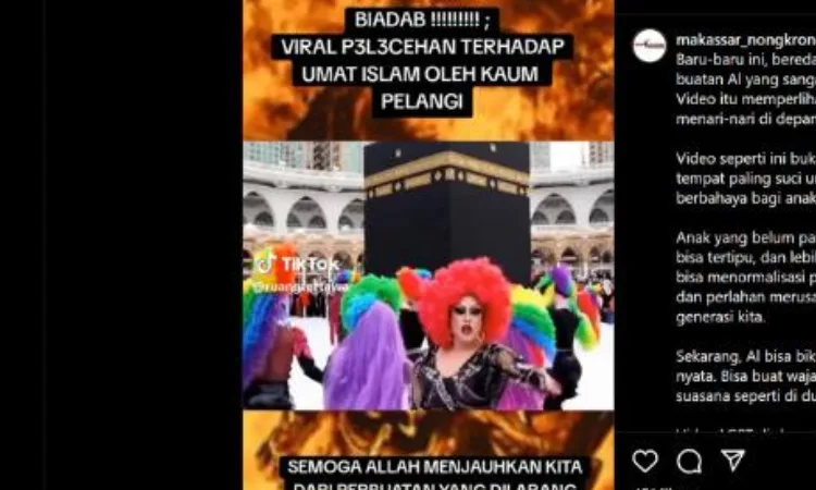 Konten tersebut menampilkan klip-klip yang menunjukkan peserta pawai dengan kostum dan bendera pelangi yang mengelilingi Ka’bah.