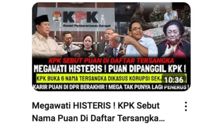 Mimbartimur.com – Sebuah video unggahan menyebutkan bahwa Ketua Dewan Perwakilan Rakyat (DPR) Puan Maharani telah ditetapkan sebagai tersangka oleh Komisi Pemberantasan Korupsi (KPK) dalam kasus dugaan korupsi terkait pengadaan perlengkapan rumah jabatan anggota DPR untuk tahun anggaran 2020.