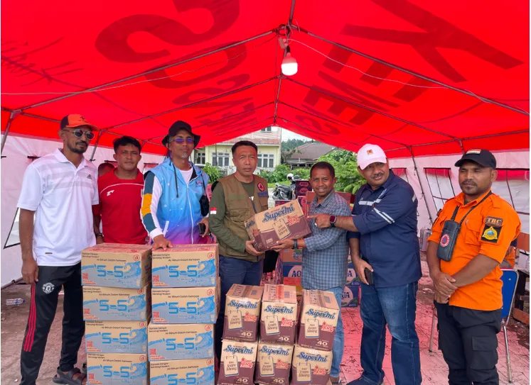Bantuan berupa mie instan, air mineral dan snack anak-anak disalurkan langsung ketua Kompas Halsel, Sarjan Jafar yang diterima oleh Wakil Bupati, Helmi Umar Muchsin didampingi kepala BPBD Aswin Adam di Posko Bencana yang didirikan Pemda Halsel di Desa Labuha, Kecamatan Bacan.