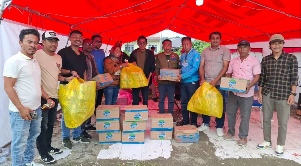 tersebut diserahkan langsung sejumlah Wartawan ke posko bencana banjir di wilayah Desa Labuha dan diterima langsung Wakil Bupati Halsel Helmi Umar Muchsin dan Plt Kepala BPBD Halsel Aswin Adam pada Senin , 23 Juni 2025.