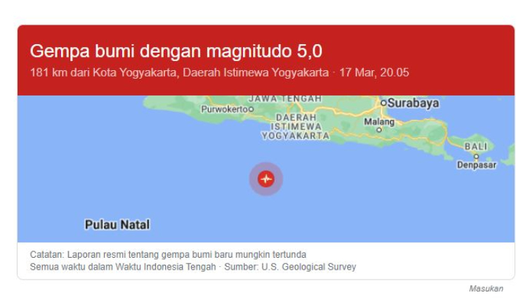 Mimbartimur.com – Gempa bumi berkekuatan magnitudo 5,6 mengguncang Daerah Istimewa Yogyakarta (DIY) pada, Jumat (17/3/23) sekitar pukul 19.04 WIB.